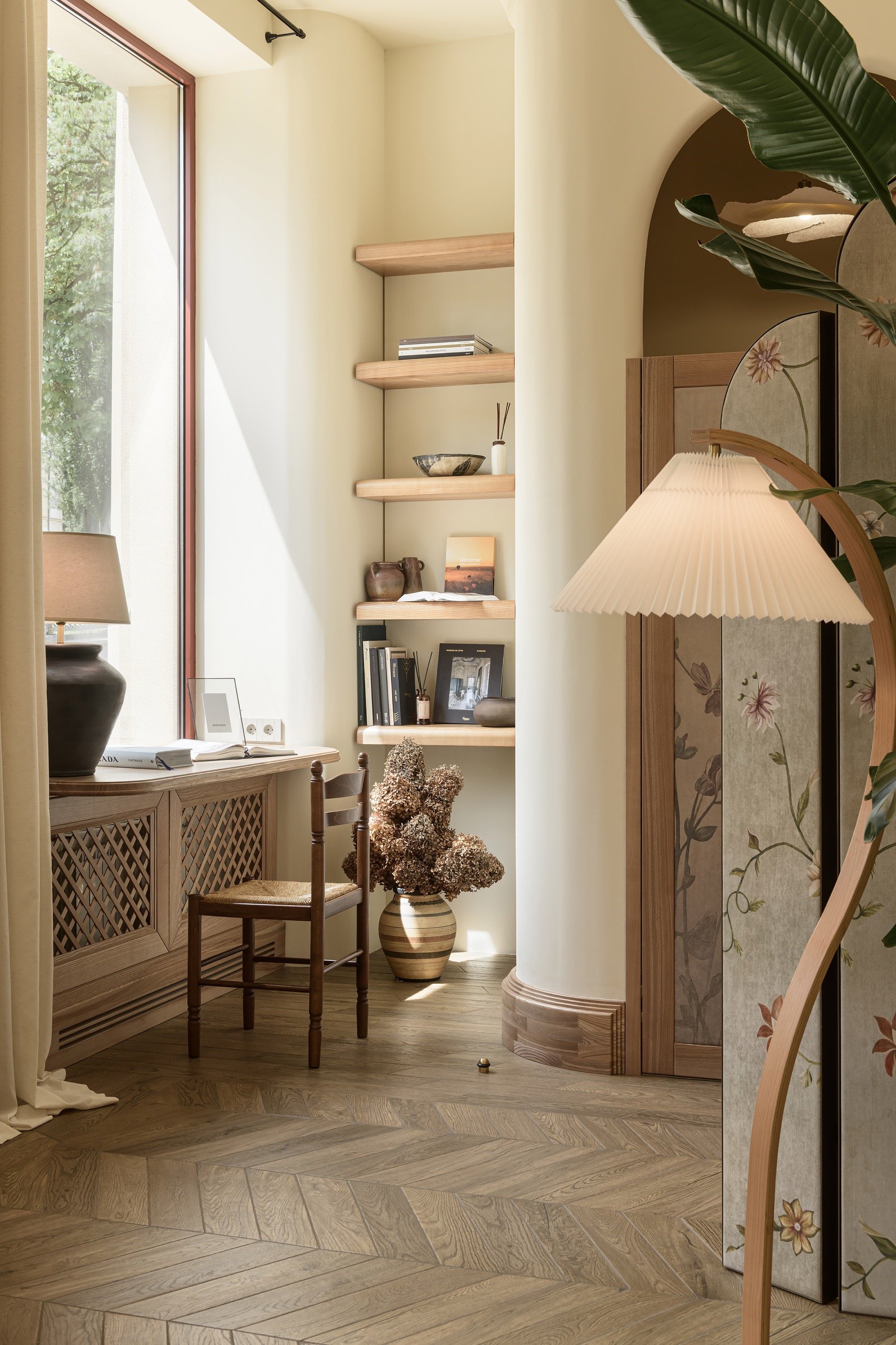 Кожен елемент інтер’єру — від дизайнерських меблів, виготовлених на замовлення, до ретельно підібраного декору — працює на створення особливого відчуття комфорту та естетики.
