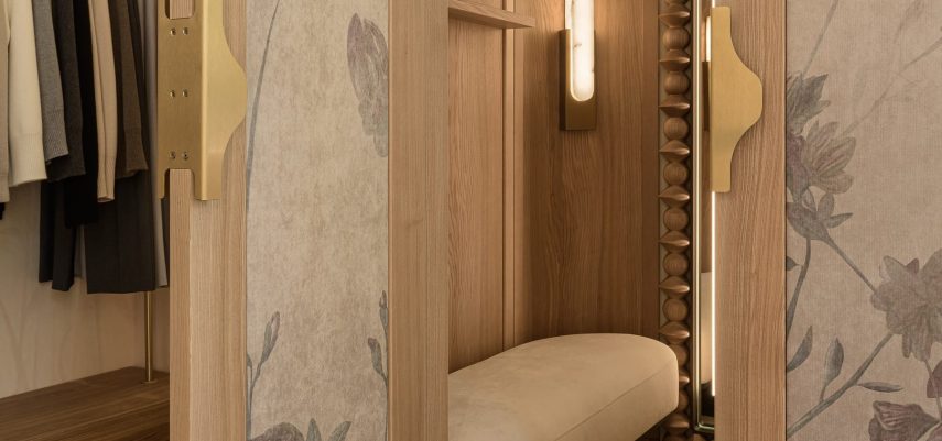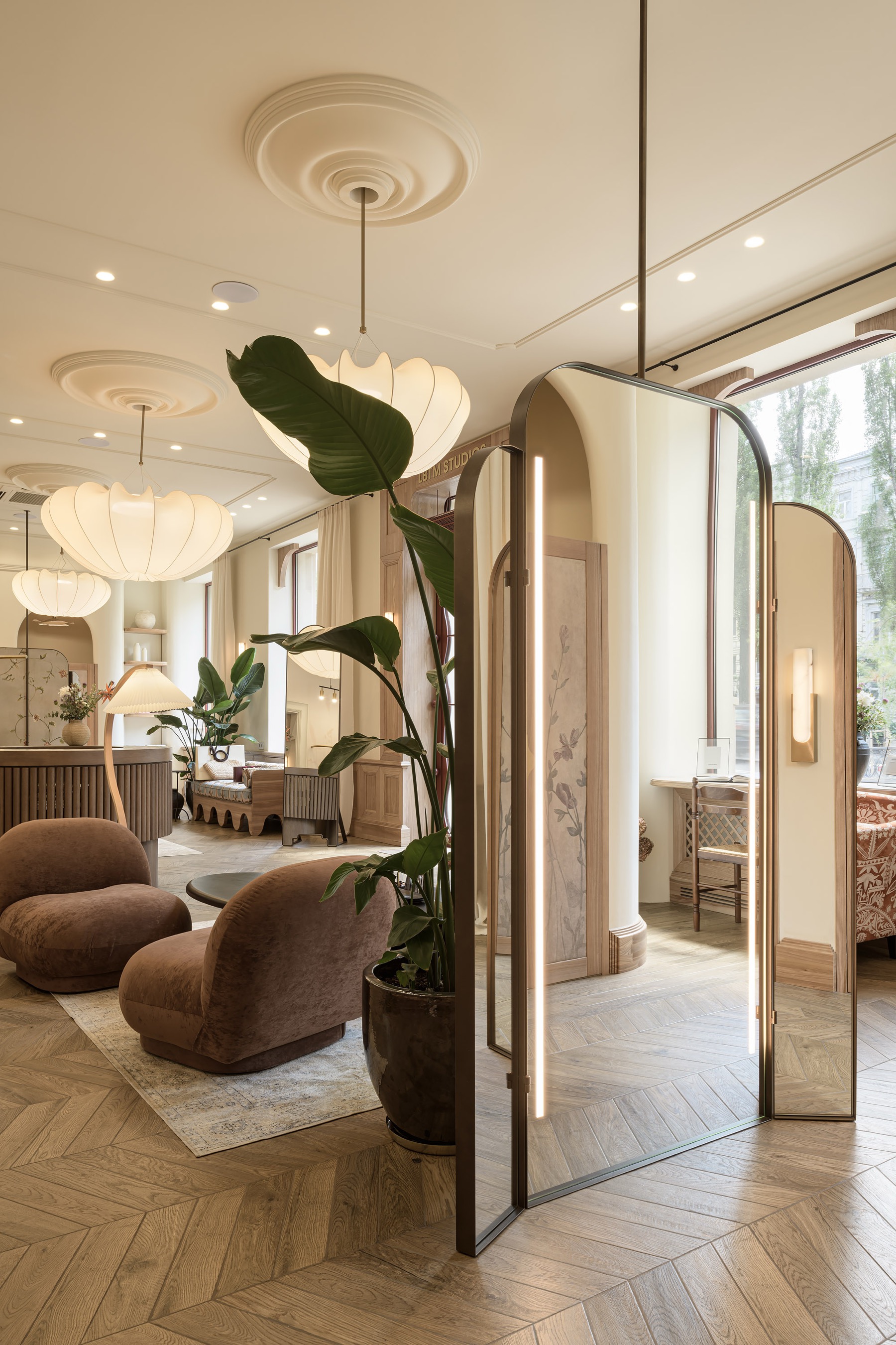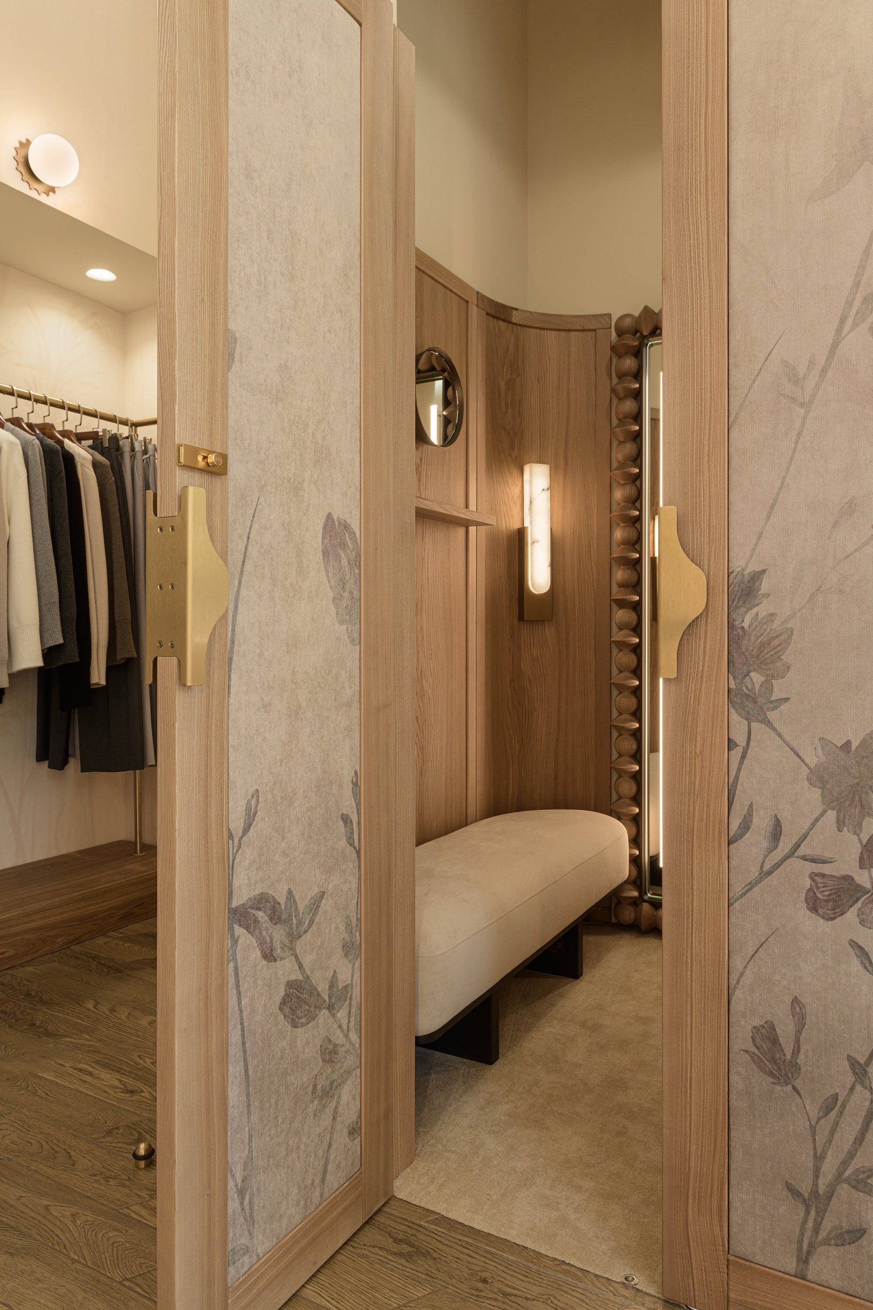 Ексклюзивні ширми та зони переодягання забезпечують атмосферу приватності й комфорту, додаючи простору легкості та елегантності. Кожна деталь — від фактури тканин до плавності форм — підкреслює унікальність і продуманість дизайну.